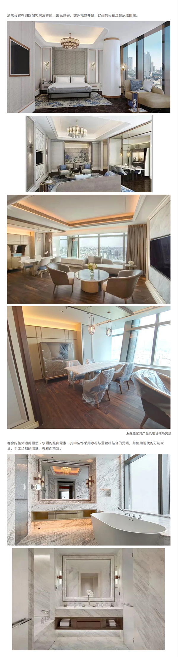 哈爾濱麗思卡爾頓酒店THE RITZ-CARLTON HARBINl 隆重登場,其出奇的光芒頓時亮出了北部**酒店奢圈,十分感謝富力集團,森源家具重磅打造酒店核心版塊的定制家具。